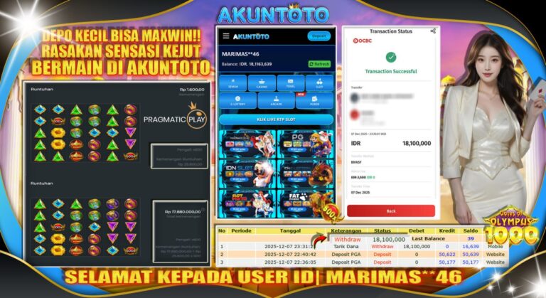 AKUNTOTO JACKPOT SLOT GATES OF OLYMPUS1000 Rp18.000.000 SENIN 08 DESEMBER 2025 Selamat kepada User id MARIMAS***46 Telah berhasil mendapatkan kemenangan besar pada permainanGATES OF OLYMPUS1000 5 – 10 menit pihak AKUNTOTO sudah melakukan transfer kepada pemilik User id dan dana sudah dapat di cairkan oleh pemenang. Bukti pembayaran yang kami berikan merupakan bukti pembayaran yang…