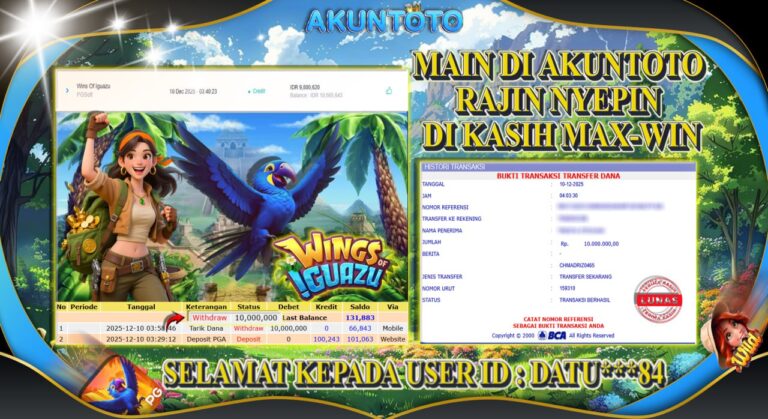 AKUNTOTO JACKPOT SLOT WINGS OF IGUAZU Rp 10.000.000,- LUNAS