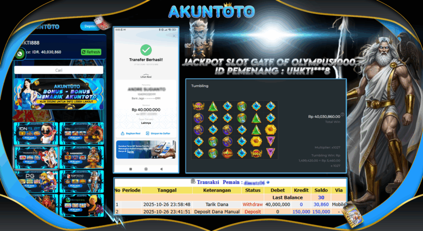 AKUNTOTO JACKPOT SLOT GATE OF OLYMPUS1000 Rp40.000.000 SENIN 27 OKTOBER 2025