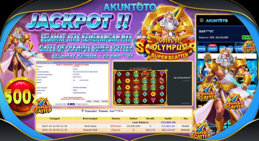 AKUNTOTO JACKPOT SLOT GATES OF OLYMPUS SUPER SCETTER Rp24.000.000 KAMIS 16 OKTOBER 2025