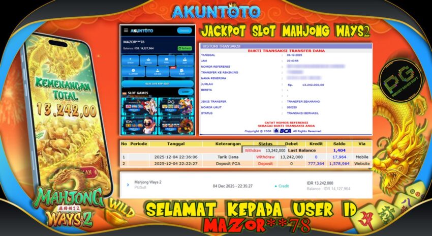 AKUNTOTO JACKPOT SLOT MAHJONG WAYS 2 Rp 13.000.000 JUMAT 05 DESEMBER 2025