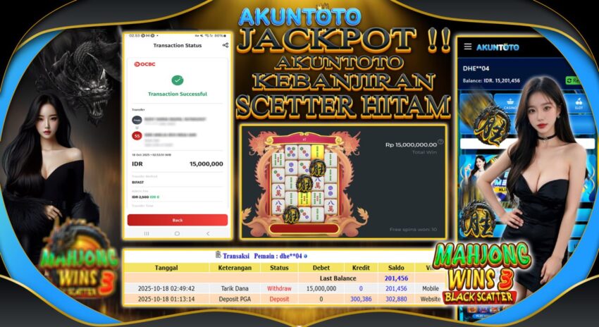 AKUNTOTO JACKPOT SLOT MAHJONG WINS 3 BLACK SCETTER Rp15.000.000 SABTU 18 OKTOBER 2025