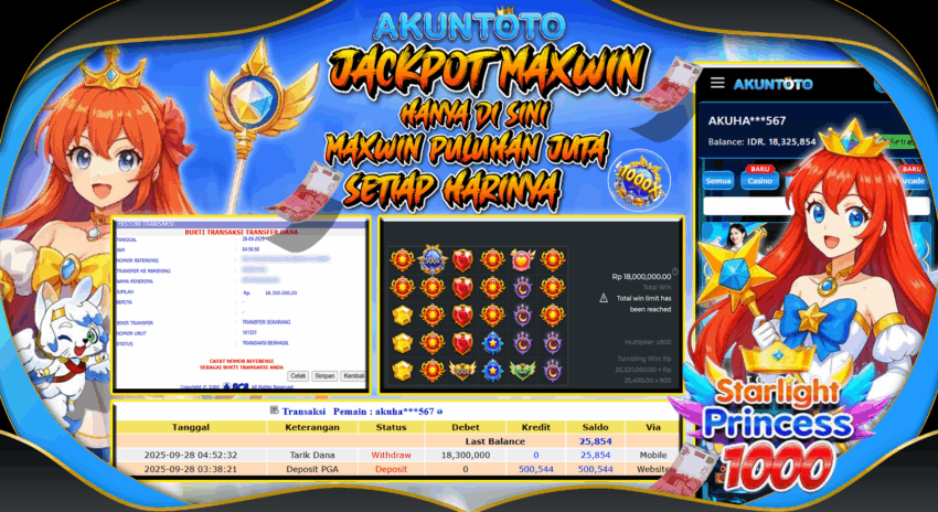 AKUNTOTO JACKPOT STARLIGHT PRINCESS 1000 Rp 18.300.000 MINGGU 28 SEPTEMBER 2025