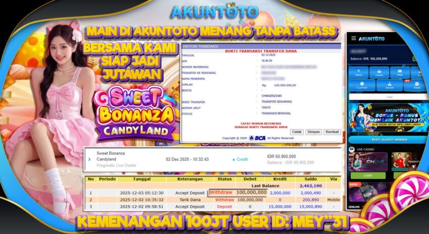 AKUNTOTO JACKPOT SLOT SWEET BONANZA CANDYLAND Rp 100.000.000 RABU 03 DESEMBER 2025